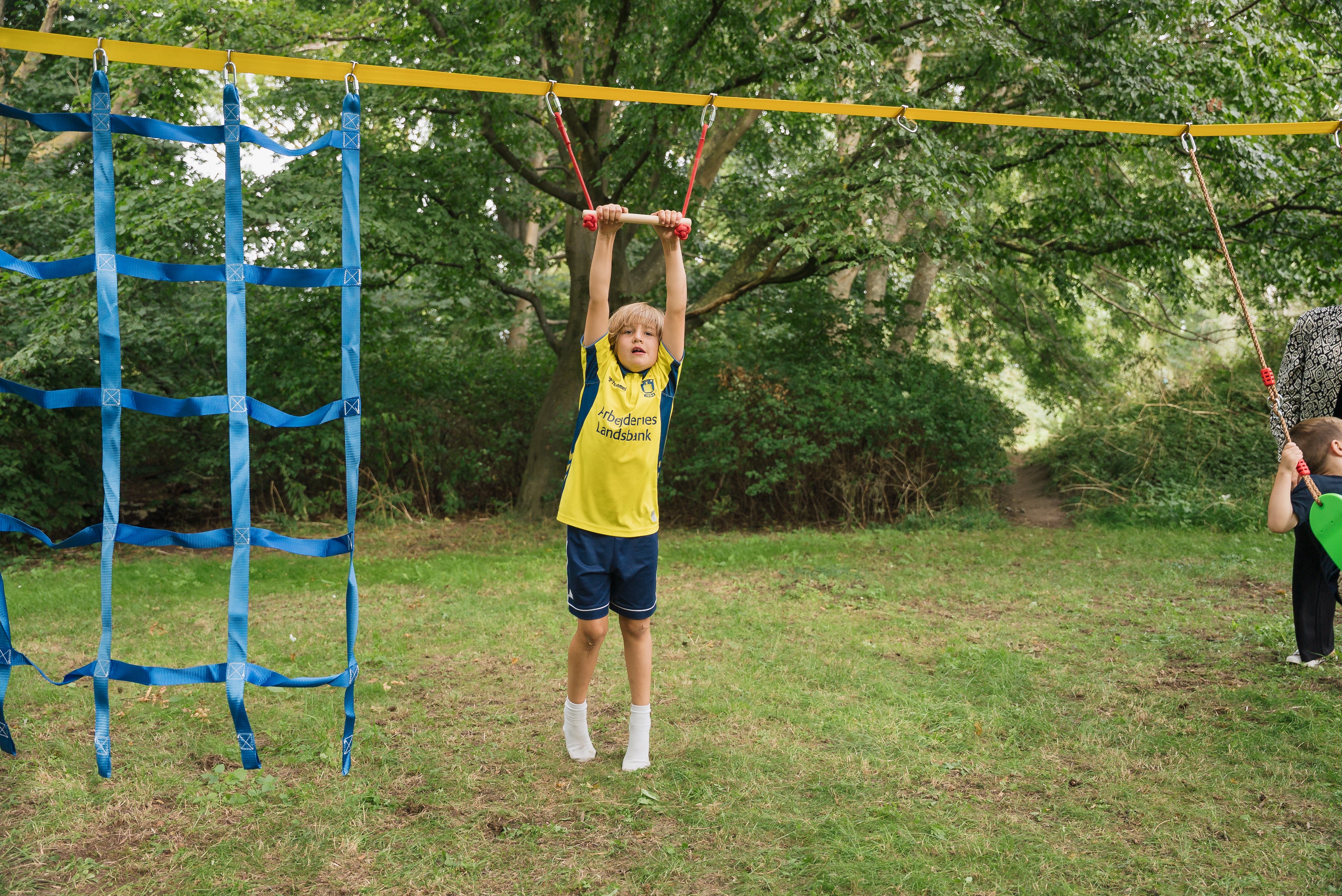 Fordele: Træner styrke, balance og koordination – og får børn ud i frisk luft. Hurtig opsætning og nemt at pakke sammen igen.